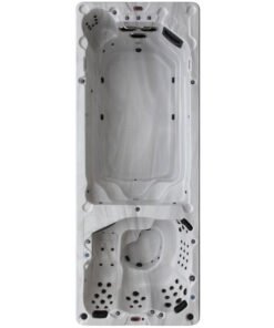 Canadian Spa Co 15 – Person 72 – Jet Acrylic Rectangular Hot Tub with Ozonator and Built-In Speaker in Sterling Silver, Walnut