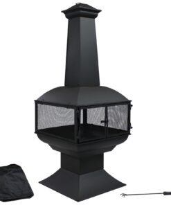 Sunnydaze 57″ 360-Degree View Steel Wood-Burning Chiminea with Grate, Poker, and Cover