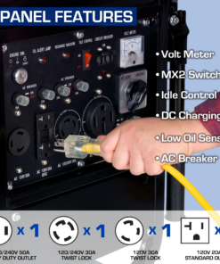 | What’s in the Box? | XP10000E Generator, Oil Funnel, Spark Plug Wrench, Tool Set, Wheel & Handle Kit, DC Charging Cables, and Owners Manual |