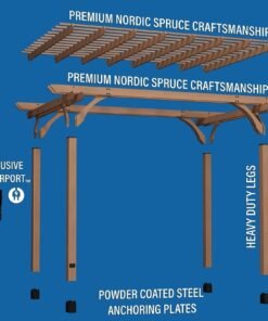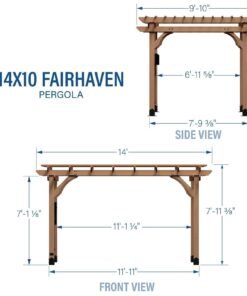 Refine your outdoor space for entertaining and relaxing with this distinguished pergola by Backyard Discovery that stands up to the elements year after year. The Fairhaven Pergola is a Pro-Tect™ certified performance structure; certified to withstand up to 100 mph winds. The Fairhaven is also made from naturally resilient and everlasting Nordic Spruce lumber that resists decaying, cracking, splintering and warping over time. With a 14’x10’ footprint, the Fairhaven provides plenty of room for furniture, fire pits, and electronic devices. The exclusive PowerPort™ gives you USB ports and electrical outlets to use for lights, speakers, TVs, or anything else you may want to power up while enjoying time outside.