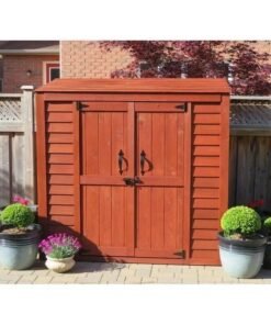 Shed TypeTool ShedPrimary MaterialSolid WoodWood SpeciesCedar; SPFColorNatural CedarStorage Capacity108 cubic feetFoundation RequiredYesFoundation IncludedNoRecommended Foundation Size74.5″ W x 35.75″ D minimumFloor IncludedYesWindows IncludedNoBuilt-In Shelving IncludedYesNumber of Shelves2Shingles IncludedYesFlower Box IncludedNoNumber of Doors2Door StyleDouble DoorYear-Round UseYesWind Rating50Weather ResistantYesWater ResistantYesNatural Variation TypeNatural Wood Grain Color VariationImportedYesAssembly