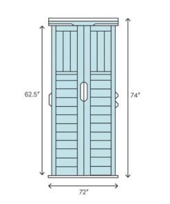 - Overall6′ W x 3′ D x 6′ 2” HInterior5′ 10” W x 2′ 7 3/4” D x 5′ 5 1/2” HDoor3′ 4” W x 5′ 2 1/2” HCoverage Area16 square feetOverall Product Weight330 lb.Recommended Foundation Width6′ 2 1/4”Recommended Foundation Depth2′ 10 3/4”Interior Height from the floor – Rear69”