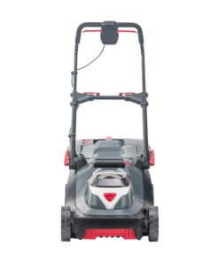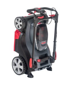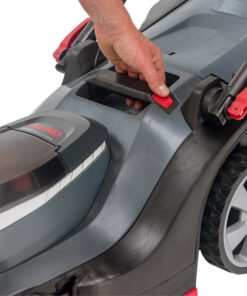 The telescopic handlebar is also particularly noteworthy – ideal for individual adjustment to your body size including a comfortable and smooth-running height adjustment button – sets the desired cutting height super easily at the push of a button. With integrated carrying handle for easy transport and mulching function.