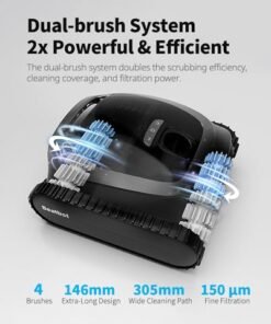 - Powerful Cleaning & Wall Climbing: The robust 200W brushless main-pump motor generates massive suction powerful and ultra-strong 5500GPH, effectively climbing walls including arc-shaped walls, and capturing debris in the ultra-fine 150μm filter basket.