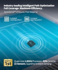 - Best Intelligent Path Optimization Algorithm: Powered by an industry-leading quad-core 1.8GHz CPU, 15 sensors, and AI algorithms, the robotic pool cleaner precisely maps your above and in-ground pool, optimizes the cleaning path, and combined with SonicSense obstacle avoidance, guarantees efficient navigation even in the most complex pool environments.