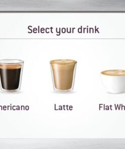 - Pre-programmed to make Espresso, Latte, Flat White, Americano, and Cappuccino with a touch