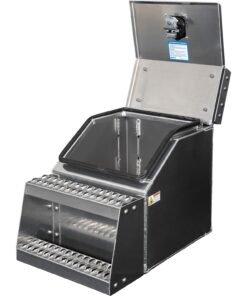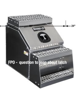 The design is heavy duty but light weight, making the boxes extremely durable without adding a lot of weight to your tractor trailer. The hinge and hardware are constructed of corrosion-resistant stainless steel. An automotive bulb seal and locking, polished stainless steel T-handle latch keep your tools protected from theft. Replaceable grip strut steps provide superior traction in inclement weather and can be swapped out as they wear down.Ultra-wide opening lid makes it easy to store and access equipment on your semi truck.Universal design fits Peterbilt®, Kenworth®, International®, Freightliner®, Western-Star®, Volvo®, and Mack® trucks.Extremely durable 0.125 in thick aluminum construction.Corrosion-resistant stainless steel hinge with heavy duty hinge and stainless steel hardware.Replaceable grip strut steps provide superior traction and can easily swap out as they wear down.Locking, polished stainless steel T-handle latch keeps your tools protected from theft.Automotive bulb seal keeps water and dirt out of your box.Easy to install on your tractor trailer frame rail, For boxes wider than 18 inches, Buyers recommends using 1701015 Steel Mounting Brackets to prevent stress cracksMade in the USA.CA Residents: Prop 65 Warning(s)