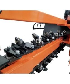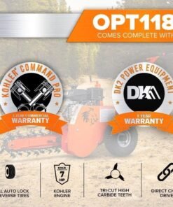 The DK2 Power 18 inch Trencher is powered by KOHLER Command PRO Commercial 3 yr 4000 rpm CH270 7 HP. High pressure sintered 21 Tungsten Carbide cutters trench at 1800ft/min. Tri cut 63 in chain traveling at 200ft/hour. Aggressive 10.5 ft/lbs torque chain at 400 rpm power through 4 in wide trenches feeding the dual belt chain auto auger. Adjustable leveling handle, axle auto lock in reverse. Lock out keys with quick depth 5 position change. Quick change teeth with .375 plow plates, HD trolly wheel for easy transportation and digging stability. DK2 Power designs and manufactures only performance commercial equipment.