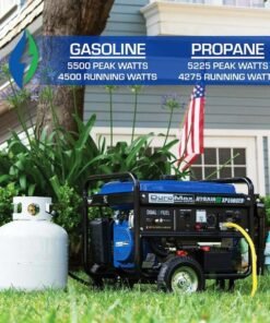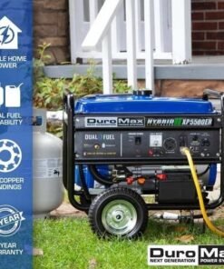 DuroMax XP5500EH 5,500 Watt Portable Dual Fuel Gas Propane Powered Generator The DuroMax 5,500 Watt Mighty Series Dual-Fuel Generator is one of the most powerful and unique generator in its class. Powered by either gasoline or propane, the dual-fuel capability coupled with an available 5.500 peak watts in a small footprint allows this generator to be used anywhere for anything! Similar units cost 2x as much and are 2x the weight. The DuroMax XP5500EH provides easy, reliable starting with either the rocker electric start, or E-Z recoil pull start. What’s in The Box -DuroMax XP5550EH Electric Start Dual Fuel Generator -Oil Funnel -Spark Plug Wrench -Tool Set -Wheel and Handle Kit -DC Charging Cables -Owner’s Manual