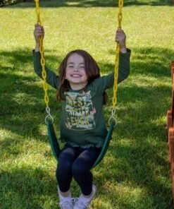 - Soft rubber grippy plastic coating on swing chains helps prevent pinches and recessed bolts prevent snagging