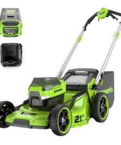 The Greenworks 60V Greenworks 60V 21″ Battery Powered Self-Propelled Mower with 8.0 Ah Battery and Rapid Charger features the most advanced power-cutting system in the industry. This innovative mower cuts up to 3/4 acre on a single charge, allowing you to effortlessly maintain your lawn without the hassle of frequent battery changes. With a runtime of 60 minutes powered by the 8.0 Ah battery, you can tackle your entire yard with ease. Thanks to the rapid charger, you can recharge the battery in just 80 minutes, minimizing downtime and keeping you productive. The folding handles of this mower allow for a space-saving storage solution, reducing the required storage space by an incredible 70%. Additionally, the Greenworks 60V mower offers outstanding performance, with 30% better mulching capabilities, 50% more power, and 60% less noise compared to traditional mowers. With its 4-in-1 system, you can choose between mulching, side discharge, bagging, or turbo pickup, giving you the flexibility to customize your mowing experience according to your preferences. Upgrade to the Greenworks 60V 21″ Self-Propelled Mower today and experience the future of lawn care technology. Includes 8.0 Ah lithium-ion battery, rapid charger. Battery is compatible with 75+ Greenworks Pro 60V products.