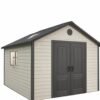 This Lifetime outdoor storage shed has a width of 10’ so that you get to enjoy some additional storage space while selecting a suitable product to accentuate the backyard space on your property. The doors are centrally located to make the shed easily accessible. This outside storage shed also features a simulated shingle roof, molded panels made out of wood-grain and decorative shutters for an attractive design.