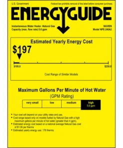 Navien NPE-240A2 – Condensing Tankless Water Heater – 199,000 BTU