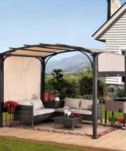 Pergola, Outdoor Steel Arched Pergola with Adjustable Canopy
