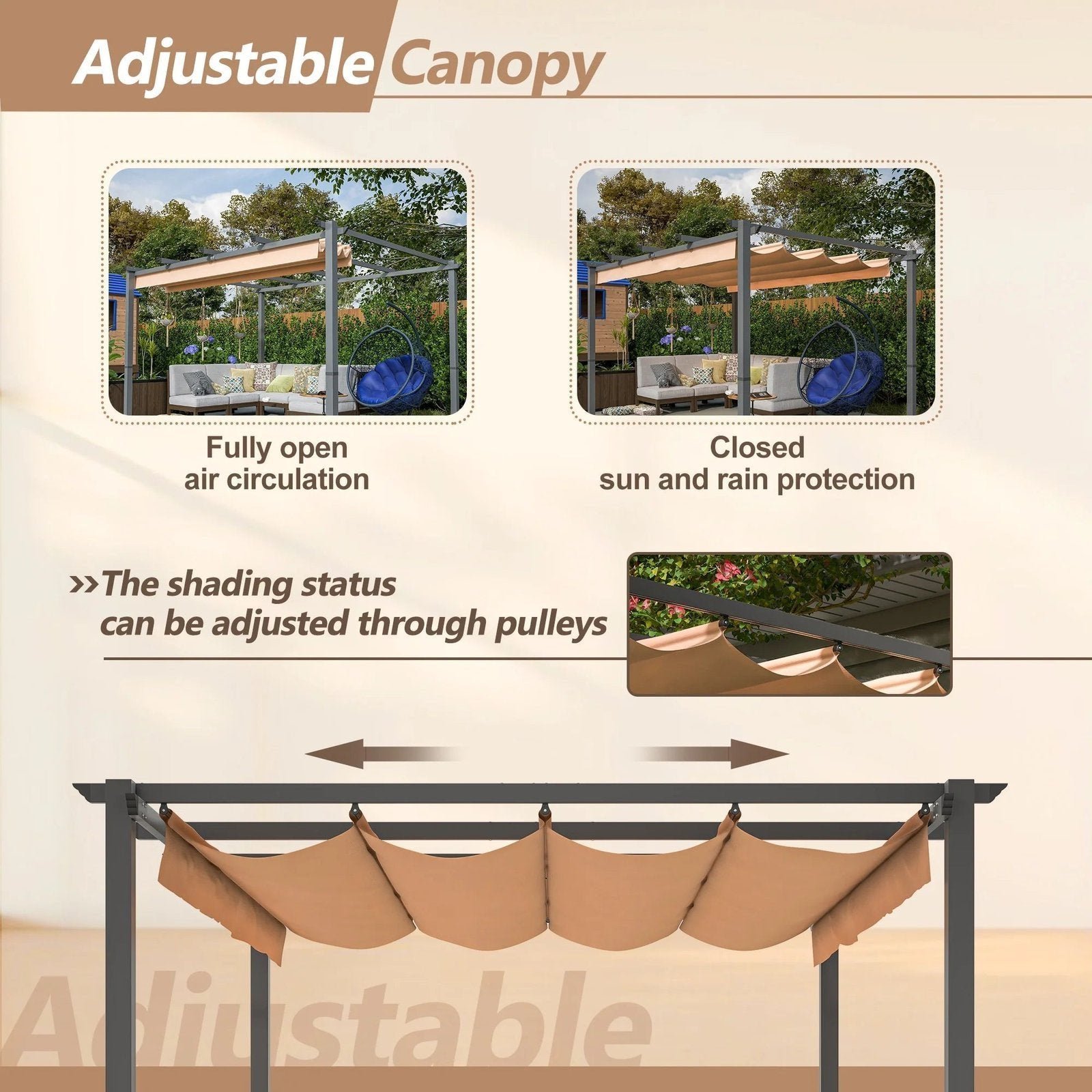 Stylish 10′ x 13′ Aluminum Patio Pergola with Retractable Canopy – Perfect Backyard Shade Shelter for Outdoor Parties