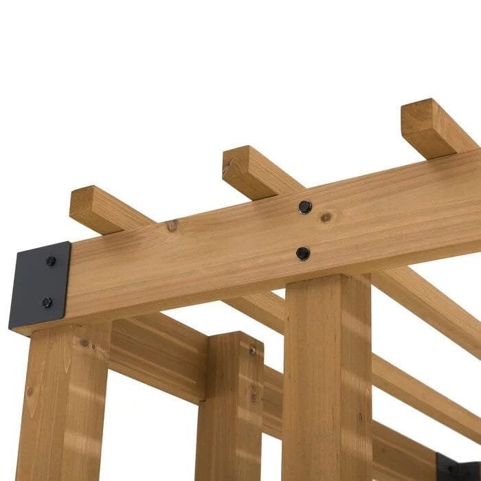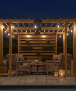 Frame MaterialSolid WoodWood SpeciesCedarFrame FinishburlywoodPowder Coated FinishYesGloss FinishYesInstallation TypeAnchoredFoundation RequiredYesShapeSquareRoof StyleFlatCanopy IncludedNoAnchor/Mounting Materials IncludedYesLouvers IncludedYesFire Pit CompatibleYesPlant CompatibleYesWater ResistantNoWarp ResistantYesCrack ResistantYesRot ResistantYesRust ResistantYesMildew ResistantYesUV ResistantYesFade ResistantYesYear-Round UseYesWind Rating18 mphProduct Care1. Periodically check and ensure that all bolts are well-tighten during use2.Do not use strong liquid cleaners.”Natural Variation TypeNatural Wood Grain Color VariationSupplier Intended and Approved UseResidential UseProvides Rain CoverNoCompatible Installation SurfacesConcrete/Pavement/Cement; Wood (Patio/Deck)Posts IncludedYesAssembly