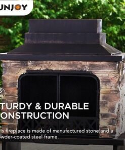 Transform your outdoor space into a cozy retreat with the Sunjoy Outdoor Wood-Burning Fireplace. Designed by Sunjoy, the world’s leading ready-to-assemble outdoor structure maker, this beautifully crafted freestanding fireplace is perfect for enhancing your patio, backyard, or garden. Featuring a manufactured stone structure and powder-coated steel frame in a copper finish with black highlights, this fireplace adds a touch of classic elegance to any setting.
