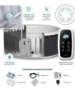 - Quick & Hassle-Free Setup: No professional installation needed! Simply inflate, fill, and plug in, making it the perfect portable hot tub for gardens, patios, and even indoor spaces.