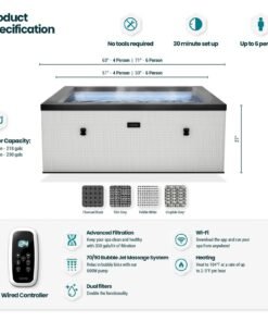 - Rapid Heating System: Equipped with a 104°F rapid heating system; fully adjustable for a personalized spa experience. It’s also controllable via Wi-Fi from your smartphone or tablet, ensuring perfect relaxation year-round.