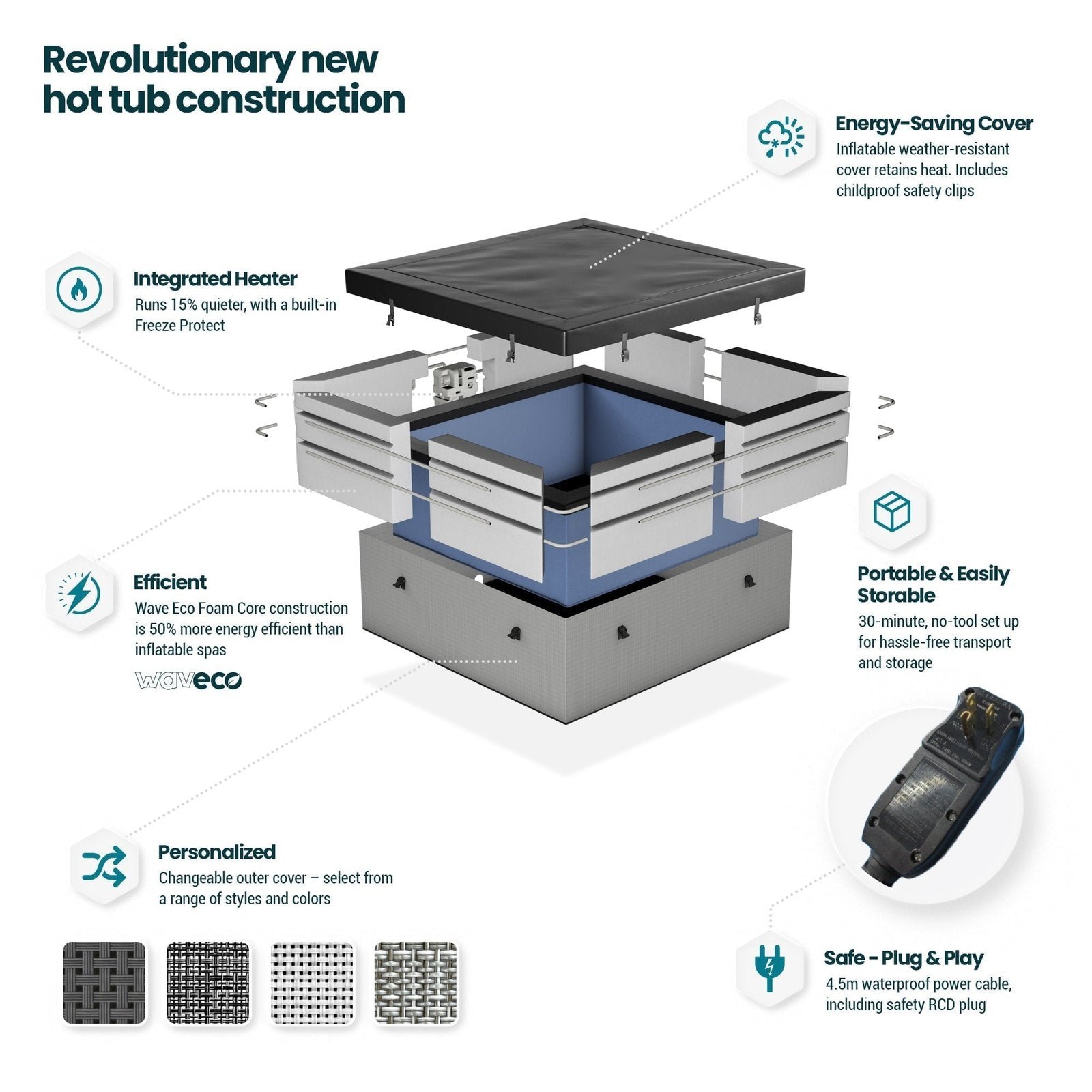 - Quick & Easy Setup: Enjoy a hassle-free 20-minute tool-free setup. Follow simple instructions to assemble your Wave Garda Hot Tub quickly, allowing more time for relaxation and enjoyment.