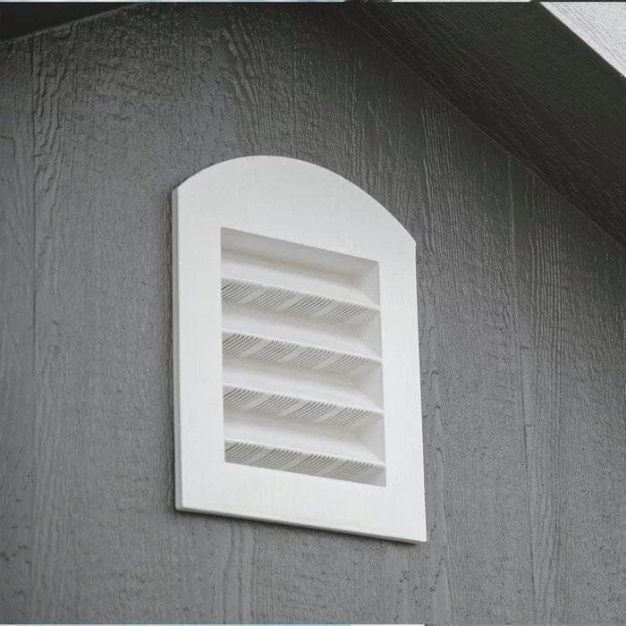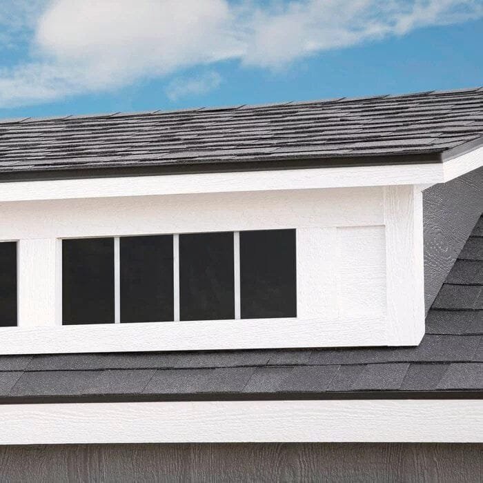 Shed TypeStorage ShedPrimary MaterialSolid + Manufactured WoodMaterial DetailsOriented Strand boardPaintableYesWood TreatmentPressure TreatedWood SpeciesPineColorGrayCladding StyleOverlapStorage Capacity1018 cubic feetFoundation RequiredYesFoundation IncludedNoFoundation Materialsolid ground, gravel, concrete, etc.Floor IncludedYesWindows IncludedYesNumber of Windows11Flexible Window PlacementYesBuilt-In Shelving IncludedYesDoor Lock IncludedYesVentilation IncludedYesShingles IncludedNoFlower Box IncludedNoNumber of Doors1Door StyleDouble DoorFlexible Door PlacementYesWind Rating130Weather ResistantYesWater ResistantYesRot ResistantYesMildew ResistantYesSnow Load Capacity30 lb.Supplier Intended and Approved UseResidential UseAssembly