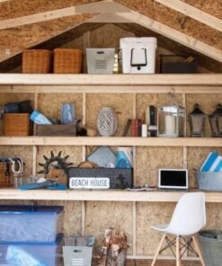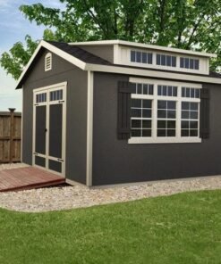 The Handy Home Windemere Do-it-yourself wood shed kit is in a class all its own – contemporary styling, extended, architectural roof overhangs, and loaded with extra features. Towering, 10 ft. high with over-sized, 7 ft. high sidewalls, this ultra-premium storage shed has it all. The treated, engineered wood siding resists fungal decay and wood-destroying insects and the choice, 2×4 wood framing provides ground-to-peak strength. Pre-hung, 56 in. wide by 6 ft. high double doors with integrated transom windows are mounted on full-length galvanized steel hinges to prevent door sagging and keep doors aligned for optimal performance. The Windemere has shed DNA but begs to be more than a storage shed. Providing 1018 cu. ft. of storage capacity, this multi-versatile wood building fits the need for storage and recreation, a creative workspace, or a lifestyle-inspired sanctuary. This wooden shed also includes a complete wood floor with treated wood floor framing and wood floor decking, deluxe window suite, appearance package, organization package, and a keyed locking handle to keep your items safe and secure. Illustrated instructions, hardware, and limited material warranty included. Paint and shingles not included (both sold separately).