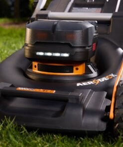 The Worx Nitro 40V 21’’ Cordless Lawn Mower is a powered-up solution to achieve a picture-perfect lawn with fewer hassles. With enhanced power that rivals gas mowers, you can mow without the emissions, loud noise, or costly maintenance of fuel. Outfitted with Aerodeck Technology, the WG760 self-propelled lawn mower boosts air volume within the cutting deck, which increases efficiency and enhances cut quality when compared to the previous WG751 model. Self-propelled function with variable speed allows you to adjust the forward speed up to 3.7 MPH so you can mow without having to push or sacrifice cut quality, making lawn mowing on hills and inclines a breeze. This electric lawn mower is backed by a Brushless Motor 2.0, which runs 10% longer and delivers 40% more power than standard brushless motors. Thanks to IntelliCut Technology, this lawn mower saves battery power for when you need it the most. It automatically picks up cutting speed to plow through thick grass, and slows down in less-dense areas to boost runtime. This walk-behind lawn mower runs on PowerShare batteries, compatible with 140+ Worx cordless tools, outdoor power and lifestyle products on the PowerShare platform. When powered with the included (2) 20V 5.0Ah PowerShare Pro, this electric lawn mower cordless delivers a max no-load runtime of 50 minutes runtime that is ideal for mowing yards up to ½ acre or less. Offering peak versatility, this 3-in-1 battery powered lawn mower supports bagging, mulching, and rear side-discharging. Use the included mulch plug and discharge chute to easily switch modes. Conveniently change cutting heights with single-lever height adjustment. It offers 7 height positions between 1.5″ and 4″. The fully collapsible handle allows for stand-up storage to save space in your garage or shed. You can also easily adjust the handle height to mow in the most comfortable position for you. And with the onboard charge-level indicator, you can always check the remaining battery power in a flash. Whatever your lawn’s needs, you can rest assured this mower can handle tough conditions. It’s high-strength polymer deck is lightweight, yet engineered to resist impact damage and corrosion to give you a longer-lasting product life.