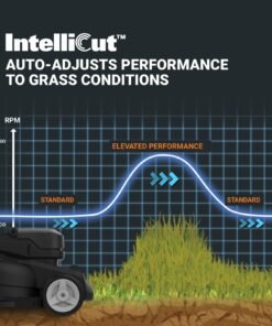 - IntelliCut™ automatically adjusts cutting speed based on grass conditions to optimize performance and runtime.