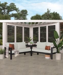Ridgedale Modern Steel Cabana Pergola with Conversational Seating